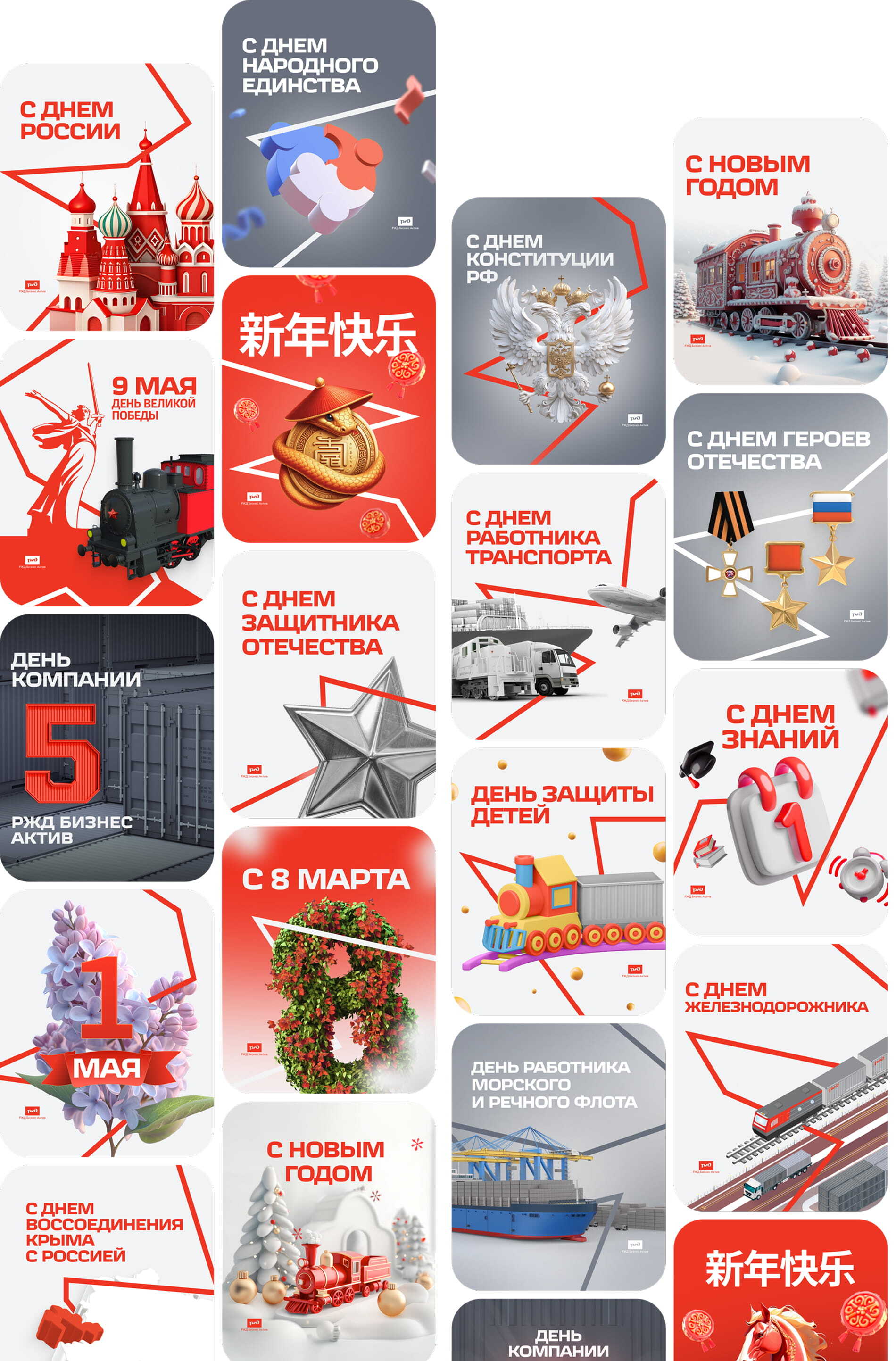 Для дизайна выбрали стилистику в рамках фирменного стиля компании. Главной целью было сохранить узнаваемость и одновременно выделиться на фоне конкурентов — крупных игроков в сфере логистики и железнодорожных перевозок.